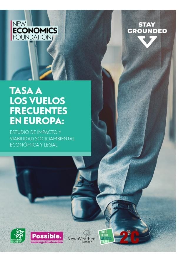 En octubre de 2024, Stay Grounded y New Economics Foundation publicaron un estudio sobre el impuesto a los vuelos frecuentes en Europa, basado en modelos económicos de CE Delft y una evaluación legal de AdaStone Law. El informe se ha publicado en varios idiomas y cuenta con la colaboración de Possible (Reino Unido), Ecologistas en Acción (ES), Bond Beter Leefmilieu (BE), 2DegreeCelsius (RO), Rester sur Terre (FR), New Weather Institute (SW), entre otras colaboraciones.